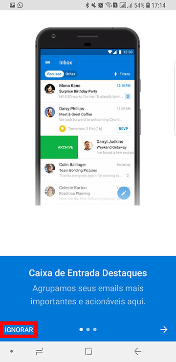 Primeiramente, abra seu aplicativo "Outlook" no seu dispositivo Android.